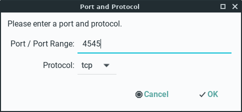 Click on Options, Reload Firewalld to activate our new firewall rule, enter your password if prompted.