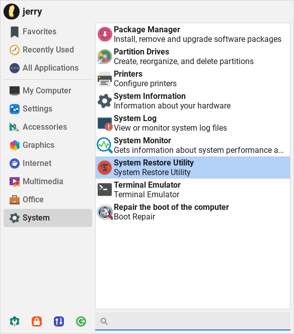You can also specify Filters to include or exclude files or directories from the snapshots. Timeshift is designed to protect system files and settings. User data such as documents, pictures and music are excluded by default. This prevents you from overwriting your documents when you restore a snapshot or using all of your storage to backup media (pictures, music, and video) files. We recommend you use the Backups application in the Accessories menu for your home folder backups, and use Timeshift for system backups, the choice is yours.
