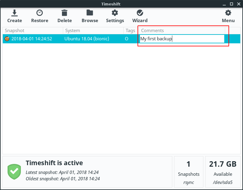 These snapshots can then be restored at a later point to undo all changes to the system and restore it to the previous state. Snapshots are made using rsync and hard-links and the tool shares common files amongst snapshots in order to save disk space. Now that we have an idea about what Timeshift is, let us take take a detail look at setting up and using this tool.